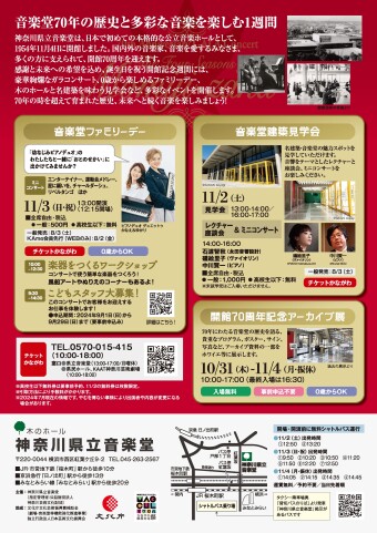 10/31~11/4の「音楽堂開館70周年記念週間」は、音楽堂と音楽の魅力にふれるさまざまなイベントがもりだくさん!「日本初の本格的公立音楽ホール」音楽堂の魅力にぜひふれてください!