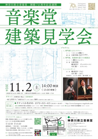 10/31~11/4の「音楽堂開館70周年記念週間」は、音楽堂と音楽の魅力にふれるさまざまなイベントがもりだくさん!「日本初の本格的公立音楽ホール」音楽堂の魅力にぜひふれてください!