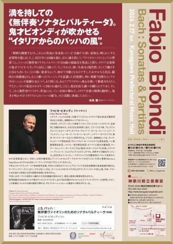 「ファビオ・ビオンディによる 想像を覆す バッハ”無伴奏"神奈川県立音楽堂でしか味わえない特別なステージ」2023年December