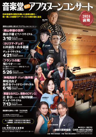 ホリデーアフタヌーンコンサート2024前期シリーズ 2024年3月10日(日) 《横山幸雄の世界》横山幸雄 ピアノ・リサイタル 2024年4月21日(日) 《カリスマ・デュオ》石田泰尚&山本裕康 デュオ・リサイタル 2024年5月26日(日) 《フランスの風》葵トリオ 2024年6月16日(日) 《神尾真由子/バッハ無伴奏》神尾真由子 無伴奏ヴァイオリン・リサイタル 2024年7月13日(土) 《華麗なるサロン、情熱のロマンス》辻 彩奈&阪田知樹 デュオ・リサイタル ■ KAme先行発売 :11月18日(土) ■ 一般発売 :11月21日(火)