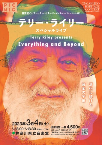 いま、運命の廻り合わせにより“人類の至宝”というべきテリー・ライリーを「音楽堂ヘリテージ・コンサート」に迎え、奇跡のライブが実現する。