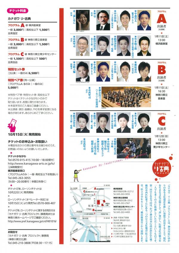 合わせ 「カナガワ リ・古典 プロジェクト」事務局(神奈川県文化課) 045-210-3808 (平日8:30~17:15)