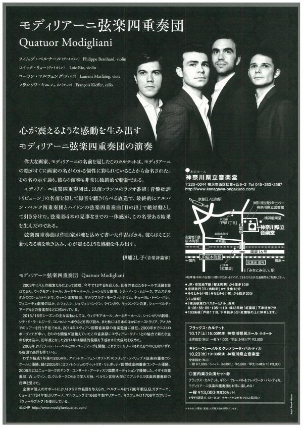 私たちは、この日本ツアーが大きな成功を収めると確信しています。さらに、今回の状況をポジティヴなものに変えたいと願っています。新しい、しかし非常に経験ゆたかな“メンバー”であるマルクと共に演奏することが、モディリアーニ弦楽四重奏団にとって新たなインスピレーションの源になると固く信じています。