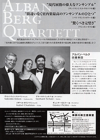 ベートーヴェン 弦楽四重奏曲 第15番 イ短調 op.132 【アルバン・ベルク四重奏団】ギュンター・ピヒラー(ヴァイオリン)、ゲルハルト・シュルツ(ヴァイオリン)、イザベル・カリシウス(ヴィオラ)、ヴァレンティン・エルベン(チェロ)ハイドン/弦楽四重奏曲 ト長調 op.77-1 Hob.Ⅲ:81、ベルク/弦楽四重奏曲 op.3、ベートーヴェン/弦楽四重奏曲 第15番 イ短調 op.132 《アンコール》ベートーヴェン/弦楽四重奏曲 第13番 変ロ長調 op.130より 第5楽章 “カヴァティーナ”