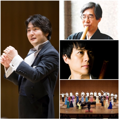 左:山田和樹((c)平舘平) 右上:関一郎 右中:藤原道山 右下:東京混声合唱団((c)青柳聡)
