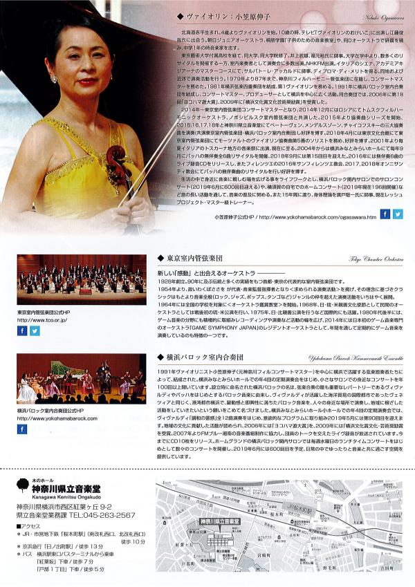 合わせ 東京室内管弦楽団チケットサービス 03-6459-0512 横浜バロック室内合奏団事務局 045-263-4127 http://www.yokohamabarock.com/