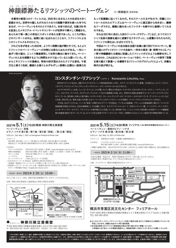 2020年ベートーヴェン・イヤーの際、リフシッツが「神奈川芸術プレス」に音楽堂プログラムや「ベートーヴェン・ピアノ・ソナタ・チクルス」への思いを語った巻頭インタビュー