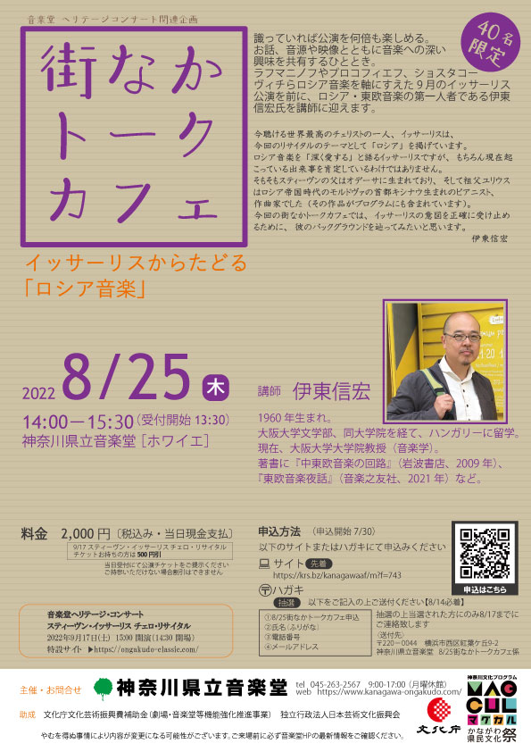 合わせ 神奈川県立音楽堂(指定管理者:公益財団法人神奈川芸術文化財団) 045-263-2567(9:00-17:00 月曜休館)