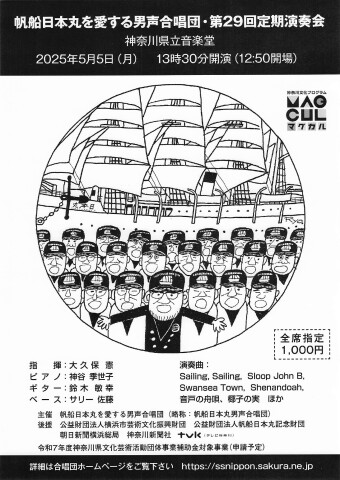 帆船日本丸を愛する男声合唱団 090-4919-2404(事務局 鶴野正樹)