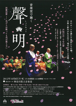 仏教儀式の中で僧侶たちが伝えて来た声楽「聲明」は、日本音楽の源流であり、その歴史性と音楽性から、キリスト教のグレゴリオ聖歌と共に、優れた宗教音楽として高く評価されています。