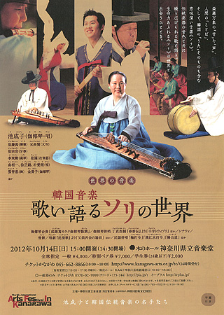 森羅万象の「音」や「声」、人間の「ことば」、そして、韓国の「うた」そのものも含む意味深い言葉《ソリ》。本公演では、韓国の伝統楽器・カヤグムの第一人者である池成子が、韓国伝統音楽界の巨匠ともいえる演奏家たちと共に、情熱と哀感を併せ持つソリの世界を多彩にご紹介します。
