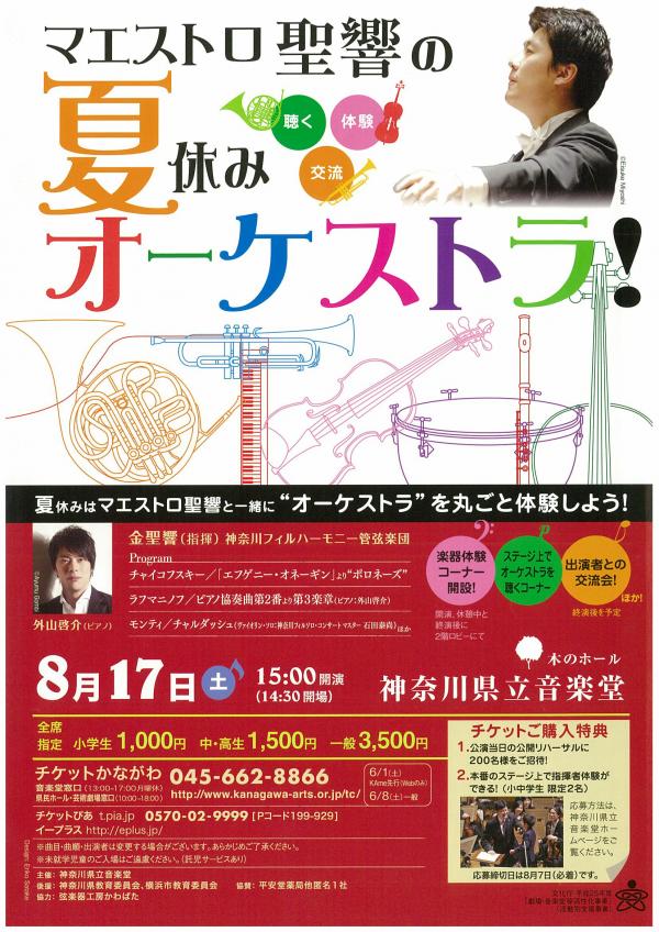 オーケストラと音楽堂がもっと身近になる「マエストロ聖響の夏休みオーケストラ!」の 関連企画に関する詳細及びお申込み方法は、こちらをクリックしてください。概要① 概要②