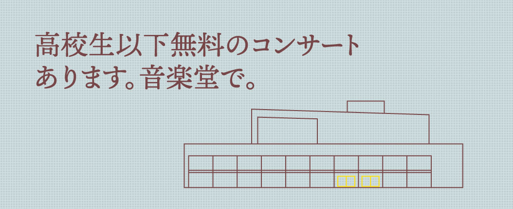 音楽堂主催公演には、小学生から高校生が無料で入場できます。(事前申込制/席数限定)
